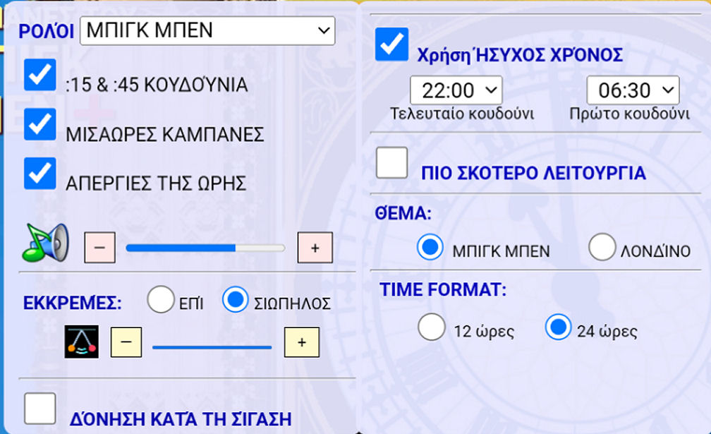 ΡΟΛΌΙ: Αν και έχει σχεδιαστεί κυρίως με γνώμονα το Μπιγκ Μπεν, διατίθενται αρκετοί άλλοι ήχοι ρολογιού.